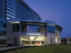 Suburban hotel with 24-hour fitness center conference center.